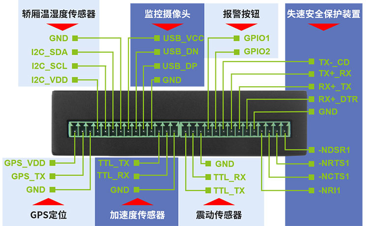 在整套电梯物联网管理方案中,将GPS定位传感器、轿厢温度传感器、加速度传感器、报警装置接入long8-龙8R100;利用R100的边缘计算能力,对采集到的数据进行运算和整形,迅速识别并响应异常运行状态;最终通过无限局域网络或蜂窝数据网络上发至管理平台,完成电梯的物联网接入。
