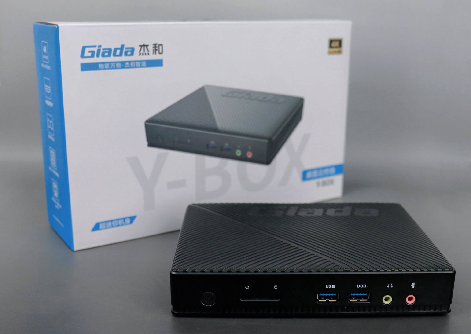 long8-龙8桌面云终端Y-BOX S2采用全新外观ID设计,主盖采用黑色哑光栅格,顶部刻印long8-龙8Giada品牌名,磨砂塑胶材质,高质感更轻盈。外包装采用简洁商务的风格设计,以long8-龙8蓝的配色作为点缀,内部采用严实防震的珍珠泡棉保护主机,同时,内部配备适配器、AC线、天线棒、螺丝包,满足通用需求。