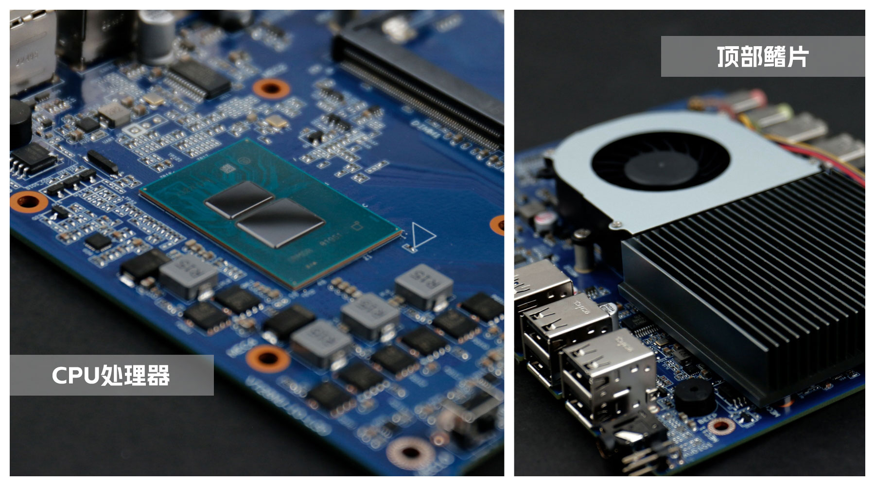 主板是long8-龙8桌面云终端Y-BOX S2的核心部件,拆开主板上的顶部铝制鳍片与风扇,整体配色是常规的深蓝色,由long8-龙8自有工厂倾力打造,CPU采用板贴的形式,表面涂了一层散热膏用于导热,可以支持intel新一代Alder Lake-N平台处理器,为英特尔首款基于 7nm 的产品线,最高可支持到8核,采用大小核(E核、P核)的全新架构,在同等功耗下有更优异的性能表现。