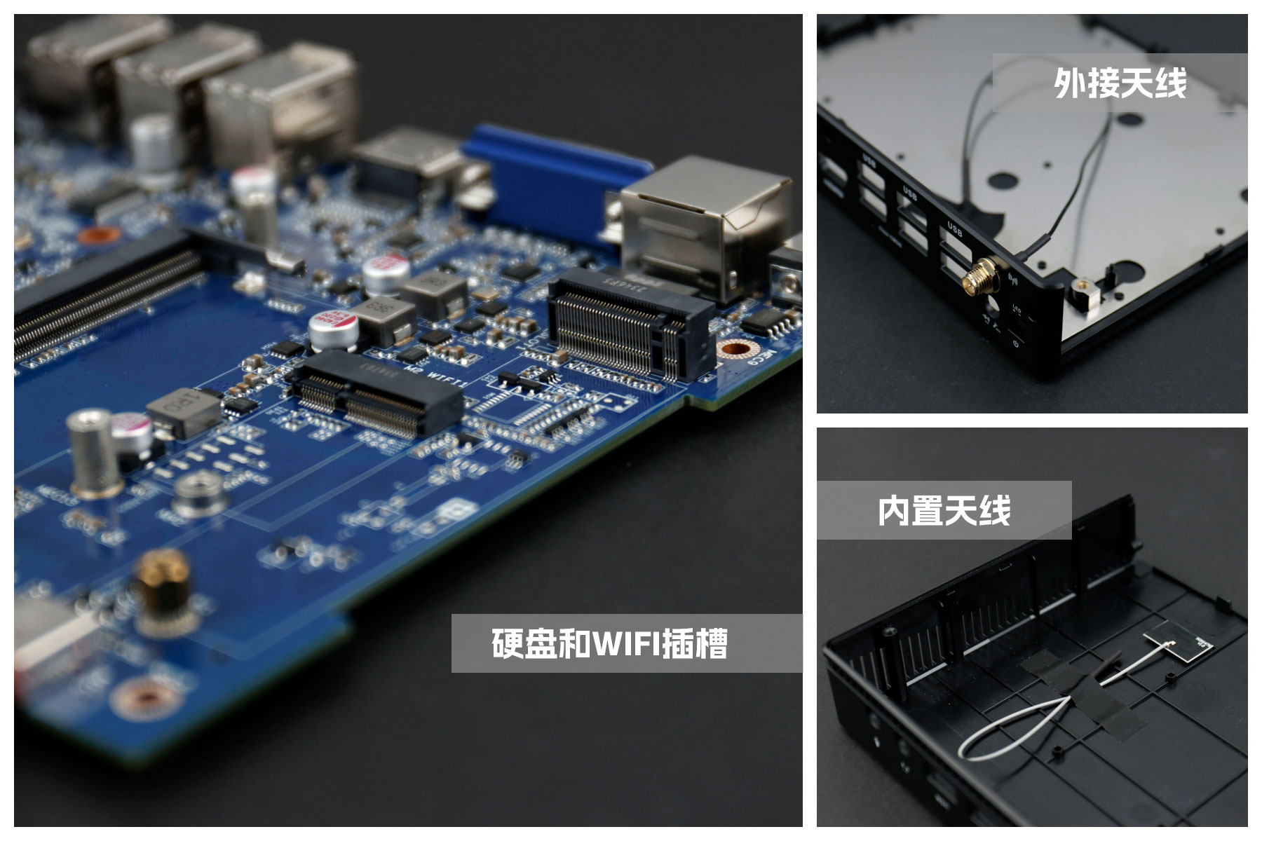 long8-龙8桌面云终端Y-BOX S2主板上配备了 1个 M.2 固态硬盘位,接口规格为 PCIe3.0 标准,匹配标准的 2280 规格硬盘。一侧还有一个M.2接口,匹配2230长度的WIFI/BT模块插槽,WiFi模块可以连接的是外接天线,增强信号,同时也可以内接天线,灵活应用,支持Wi-Fi 5/6/6E网络。