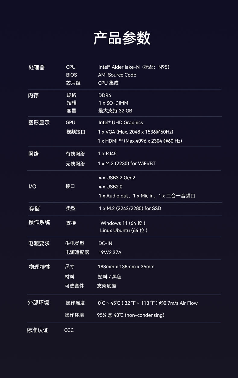 long8-龙8桌面云终端Y-BOX S2作为全新一代的虚拟化主机产品,凭借其出色的便携性、优秀的办公娱乐体验和高效节能的环保设计,在学习、办公和娱乐等各个领域展现出卓越的适应性,可以广泛应用在教育、办公、金融、家用、医疗等领域,为用户带来丰富多彩的数字化体验,针对针对客户个性化需求,支持ODM/OEM/JDM定制化服务。Y-BOX S2详细的产品性能参数如下: