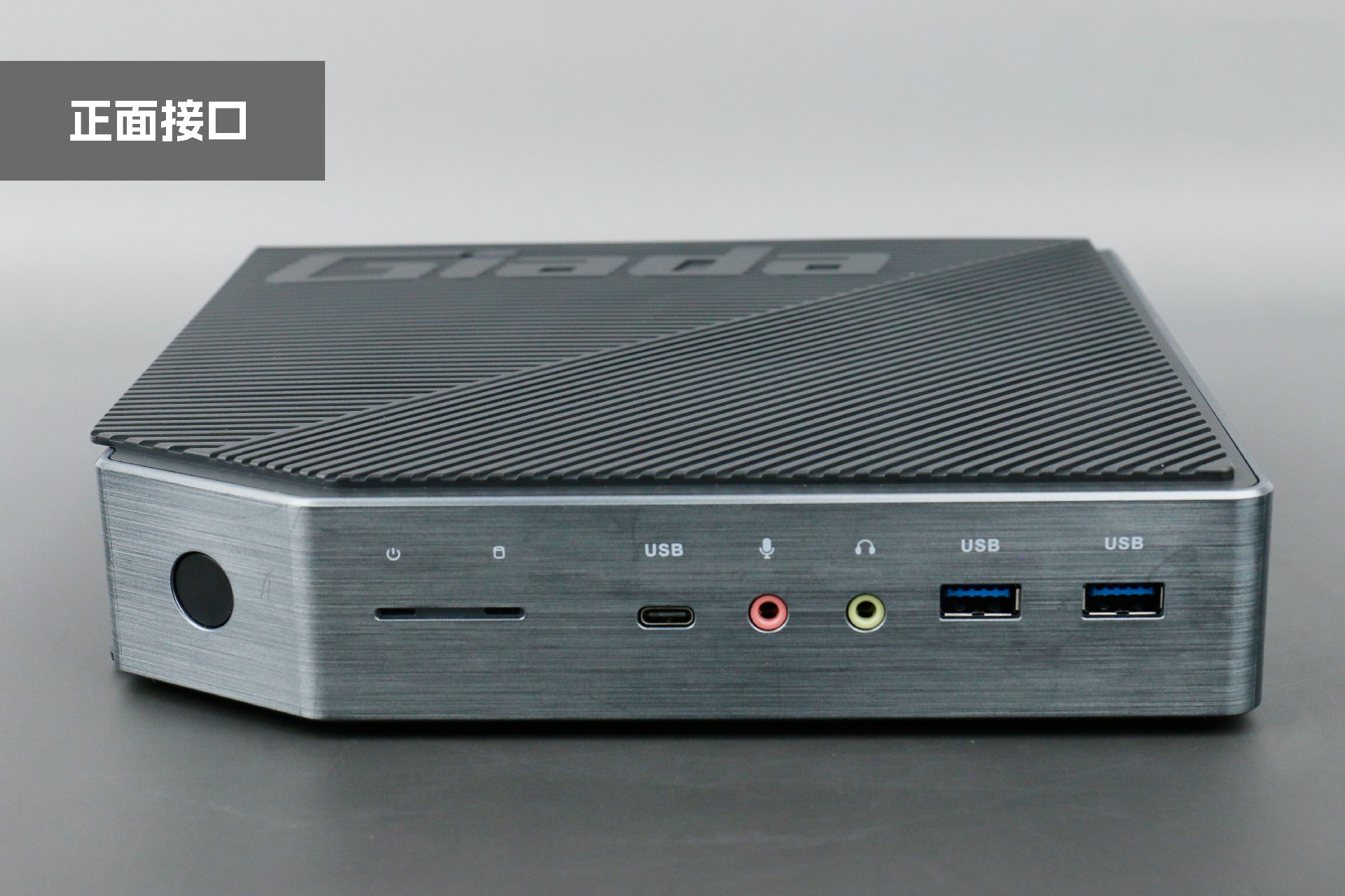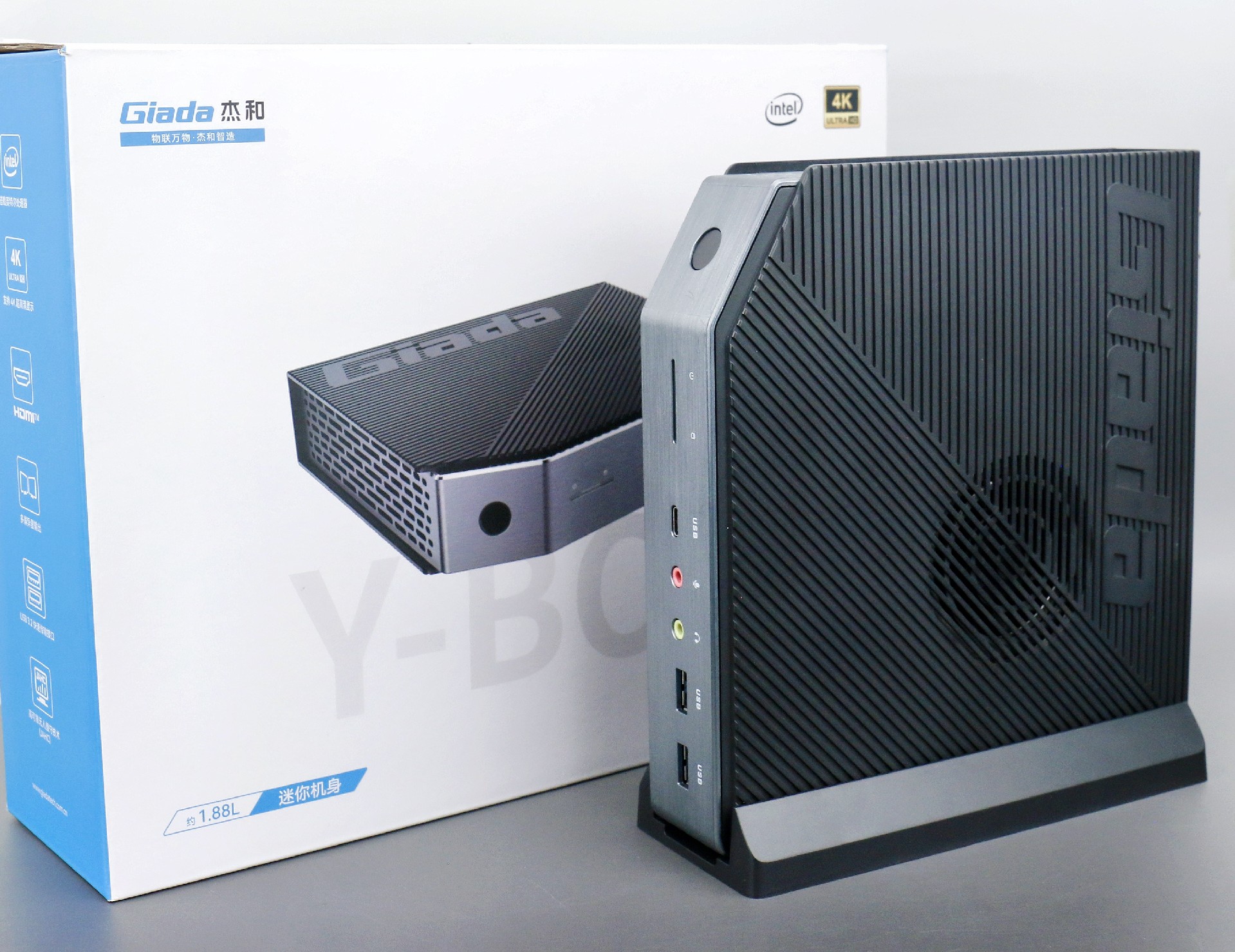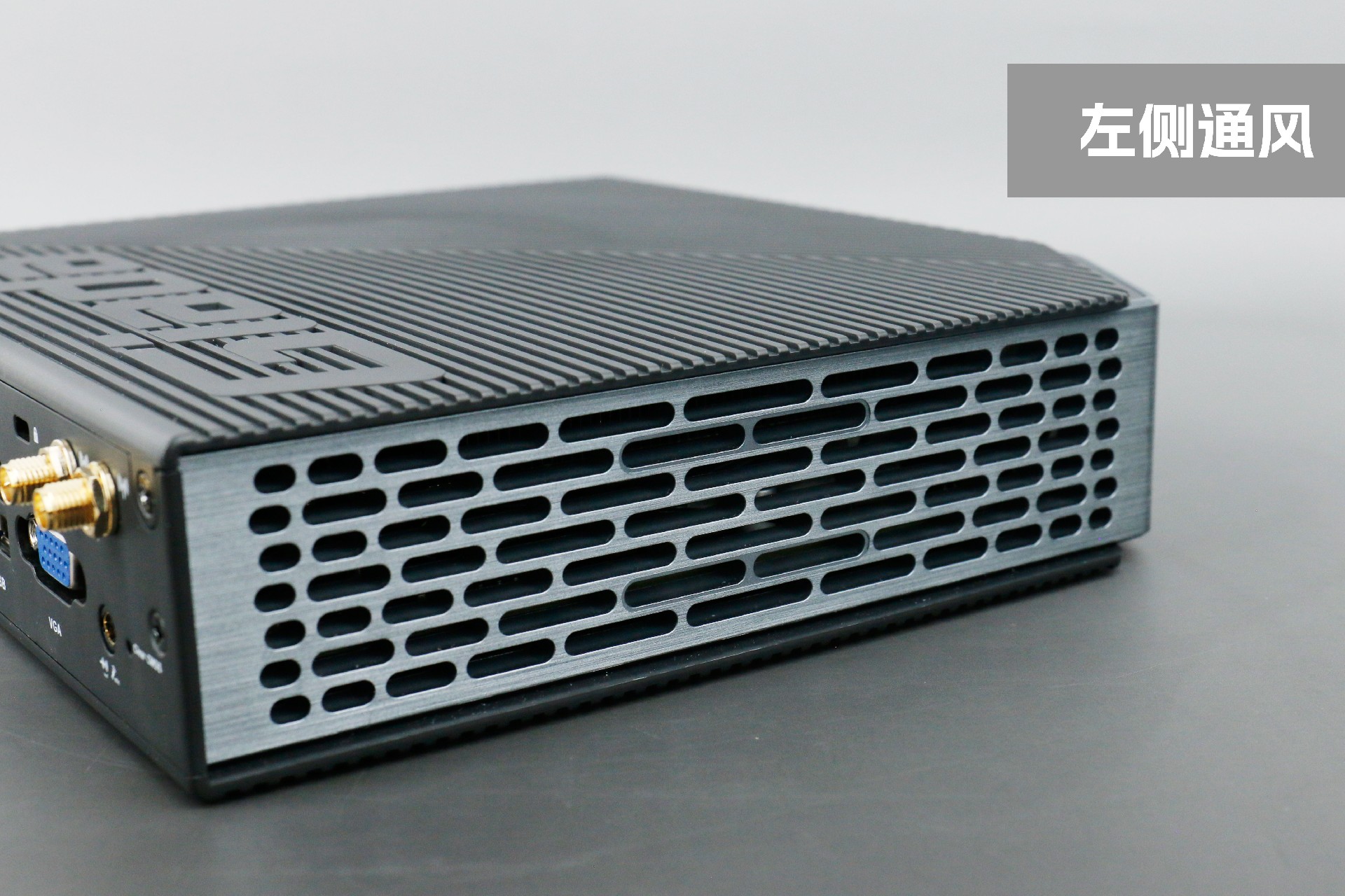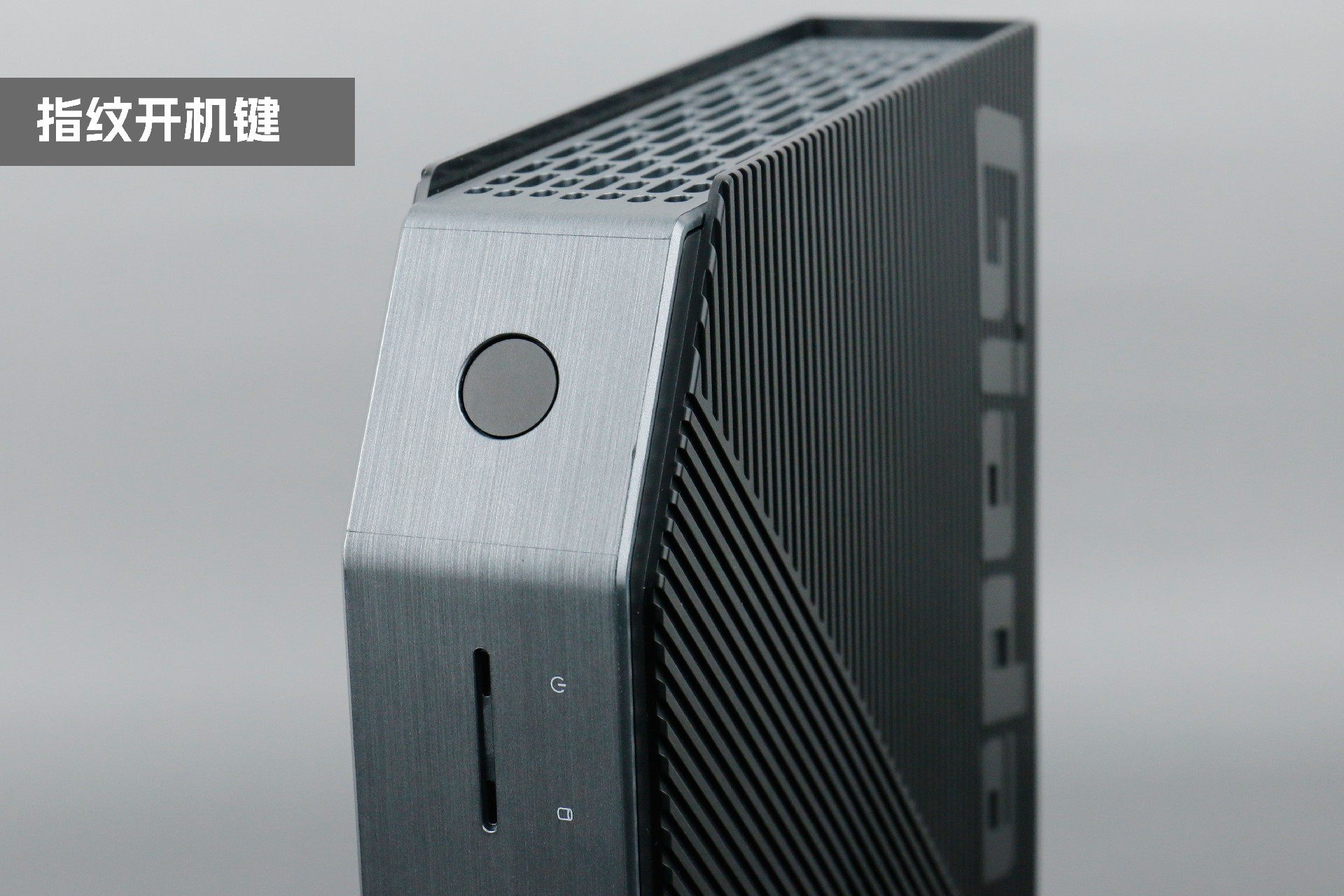 打开long8-龙8桌面云终端Y-BOX P3,你会发现它的结构并不是常见的四方体设计,而是在转角处好似被切割开一个角,切割出来的面积为指纹识别开机键。它的外观为优雅的银灰配色,机身正面厚重感十足,顶部依然沿用黑色哑光栅格并延伸至整机背面,磨砂塑胶材质壳,印刻long8-龙8Giada品牌名;其他三面则为银灰色,两侧是蜂窝式通风口设计。