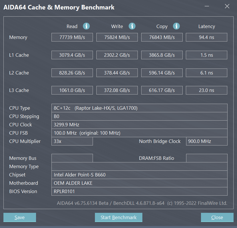 用户关心的CPU及内存也遥遥领先,CPU实测单核得分531.7左右,多核8019.0;内存方面实测DDR5内存读取速度为77739MB/s,写入速度为75824MB/s,复制速度为76843MB/s。
