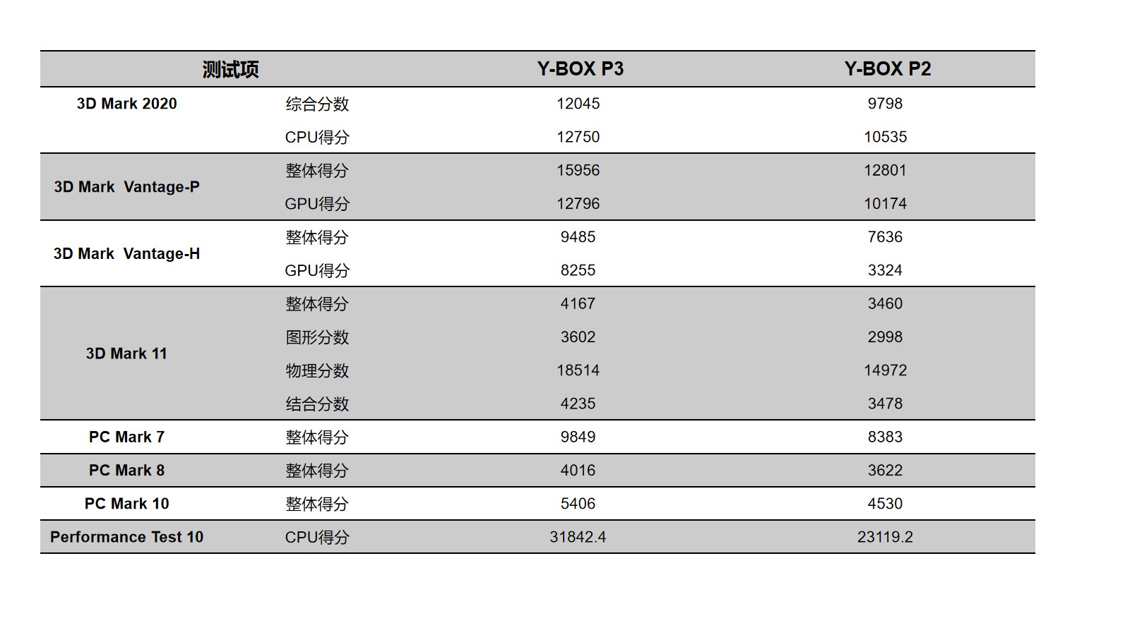 作为Y-BOX P2的迭代产品,我们选取了以下配置,将Y-BOX P3与Y-BOX P2进行对比分析,结论先行:两款产品跑分数据表示,Y-BOX P3的跑分数据及稳定性能明显领先Y-BOX P2。