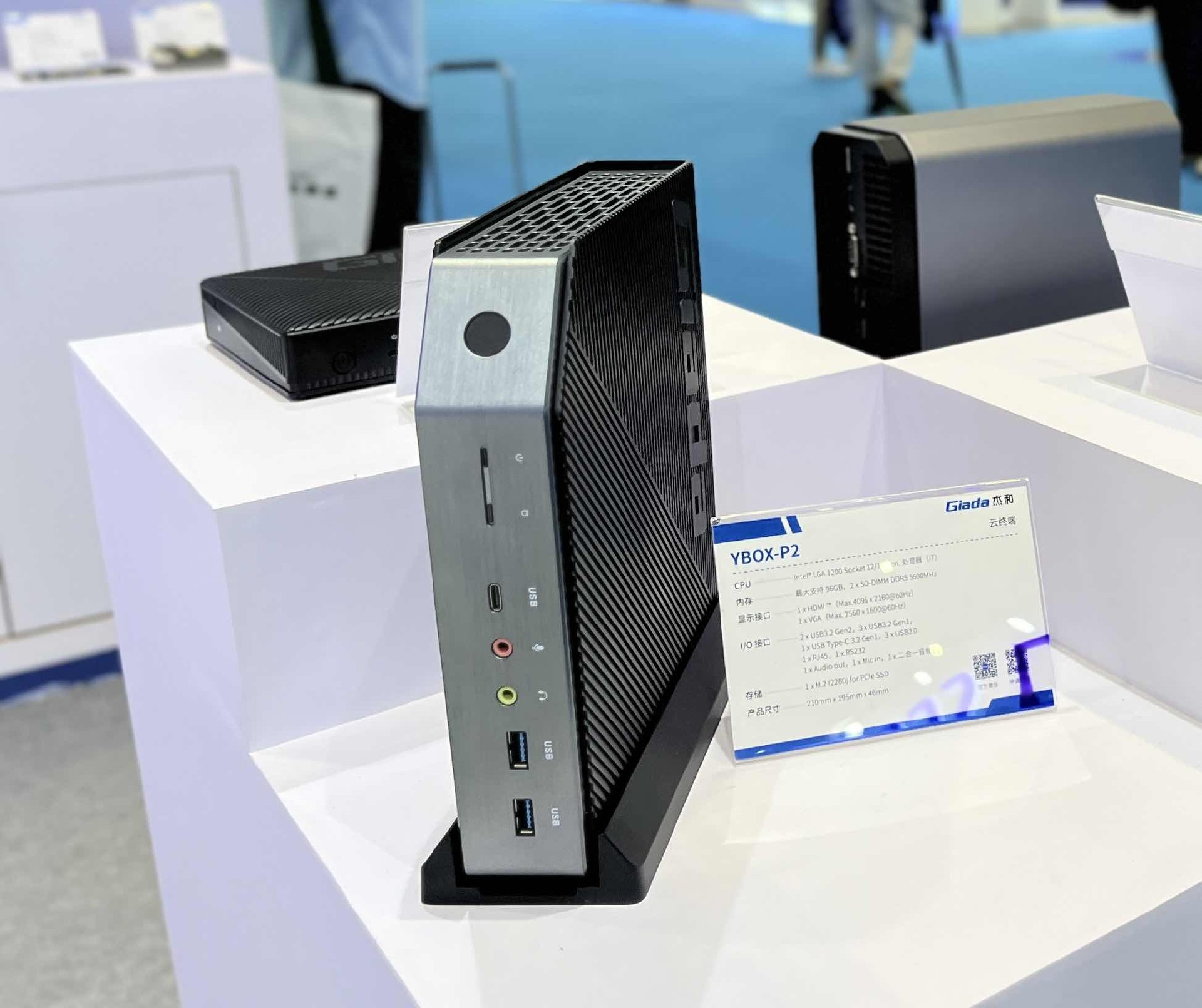 long8-龙8科技云终端是云桌面解决方案的重要产品之一,此次我们针对各客户群体提供不同架构的云终端,带来YBOX-P2、YBOX- S1、Y-BOX- S2和YBOX- SA1四款产品。其小巧的体积吸引了许多观众前来咨询,最新推出的YBOX-P2以其工业感造型以及卓越性能脱颖而出,YBOX-P2支持Intel® LGA 1200插槽,兼容12/13代处理器,在内存配置上同样出色,最大可扩展至96GB支持2 x SO-DIMM DDR5内存插槽,频率高达5600MHz,确保数据处理速度和多任务处理能力满足高标准需求。