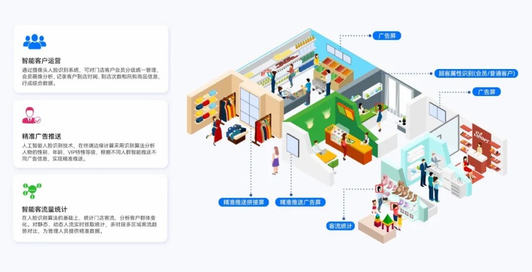 为了解决广告无法个性化展示的问题,long8-龙8科技中央大数据管控系统全面收集顾客的各种信息,包括消费偏好、购买历史、浏览习惯等,通过摄像头人脸识别,终端边缘计算分析人物的性别、年龄、VIP级别等,根据特征智能推送不同的广告信息,实现精准推送。例如,系统分析出顾客 A 经常购买运动类产品且对某品牌运动鞋有较高忠诚度,遂推送相关的广告促成消费。同时,通过对广告投放效果的实时监测和数据反馈,不断优化广告投放策略,进一步提高广告的个性化精准度。