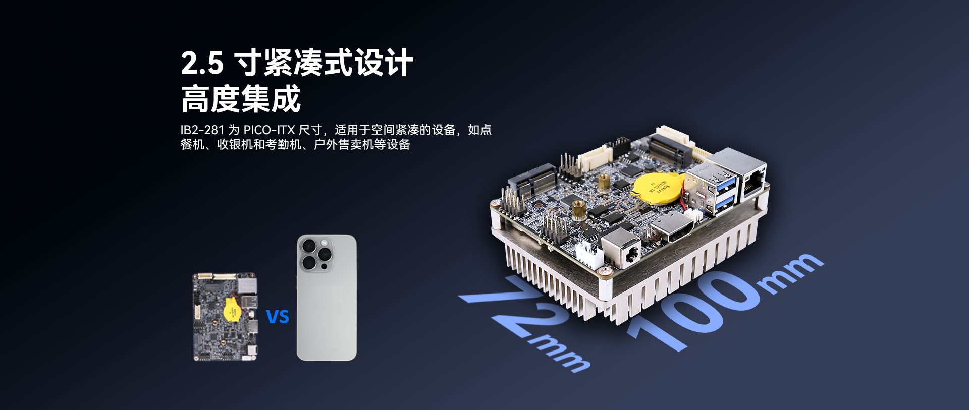 无风扇嵌入式主板去掉了风扇这一易损部件,消除了因风扇故障引发的系统问题,提高了系统的稳定性和可靠性。它采用了高度集成化的设计,体积更为小巧,如long8-龙8科技Pico-ITX主板IB2-281,其2.5寸紧凑式设计,适用于点餐机、收银机和户外售卖机等空间有限的应用场景。这种主板通常具备低功耗的特性,减少了能源消耗,也降低了发热。而且,它的稳定性极佳,能适应各种复杂环境。