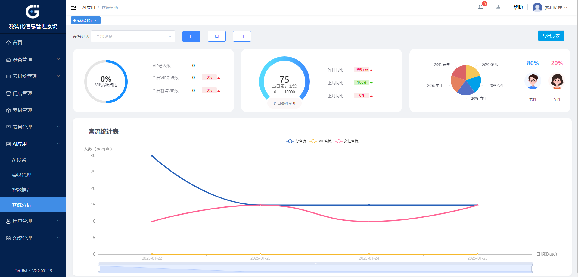 为了精确分析顾客数据,我们的GAM-AI系统能够在特定时段内,自动统计不同人群的数量、性别、年龄段以及他们在特定区域的滞留时间等关键信息。
