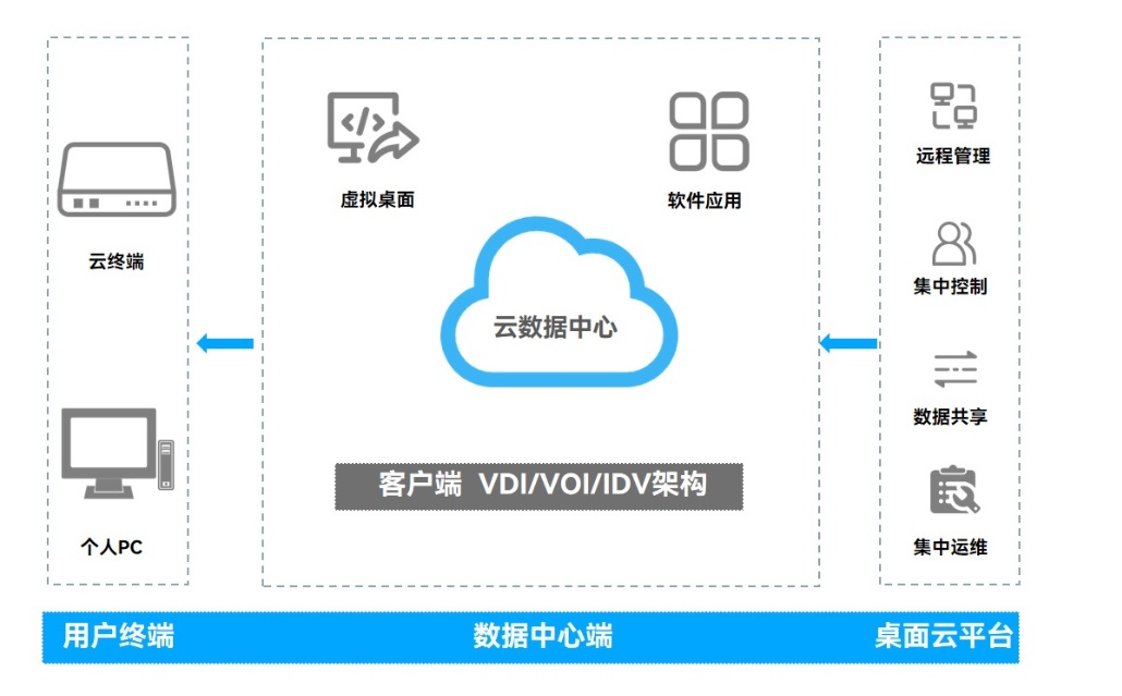 云终端拥有一层独特的“云”属性,这里的“云”指的是集中管理的数据中心,所有的数据处理、存储和应用运行都在云(数据中心)进行,用户通过云终端远程访问这些资源。这使得数据更容易受到保护和监控,确保了数据的安全性,减少数据泄露的风险,降低了外界黑客攻击窃取信息的可能性。