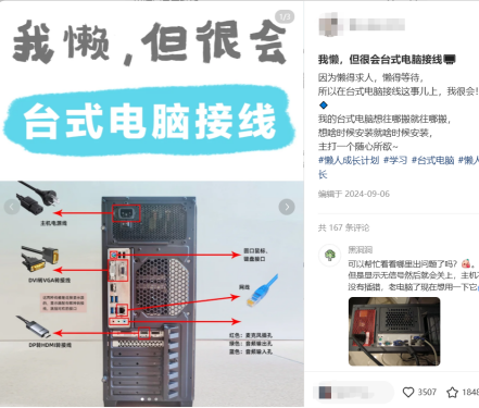小红书平台上“电脑接线教程”笔记
