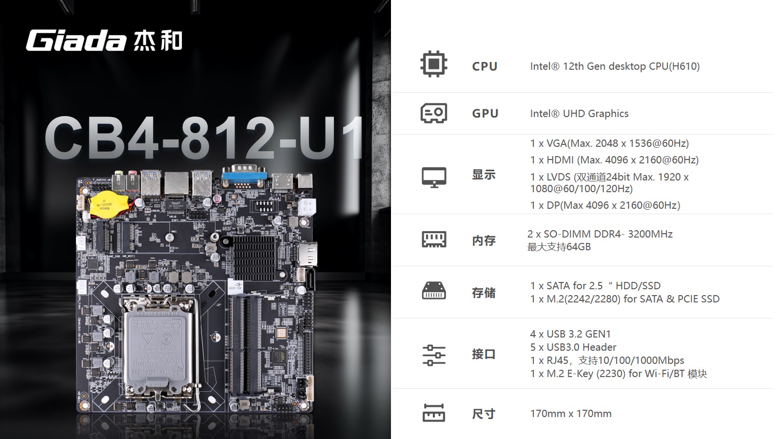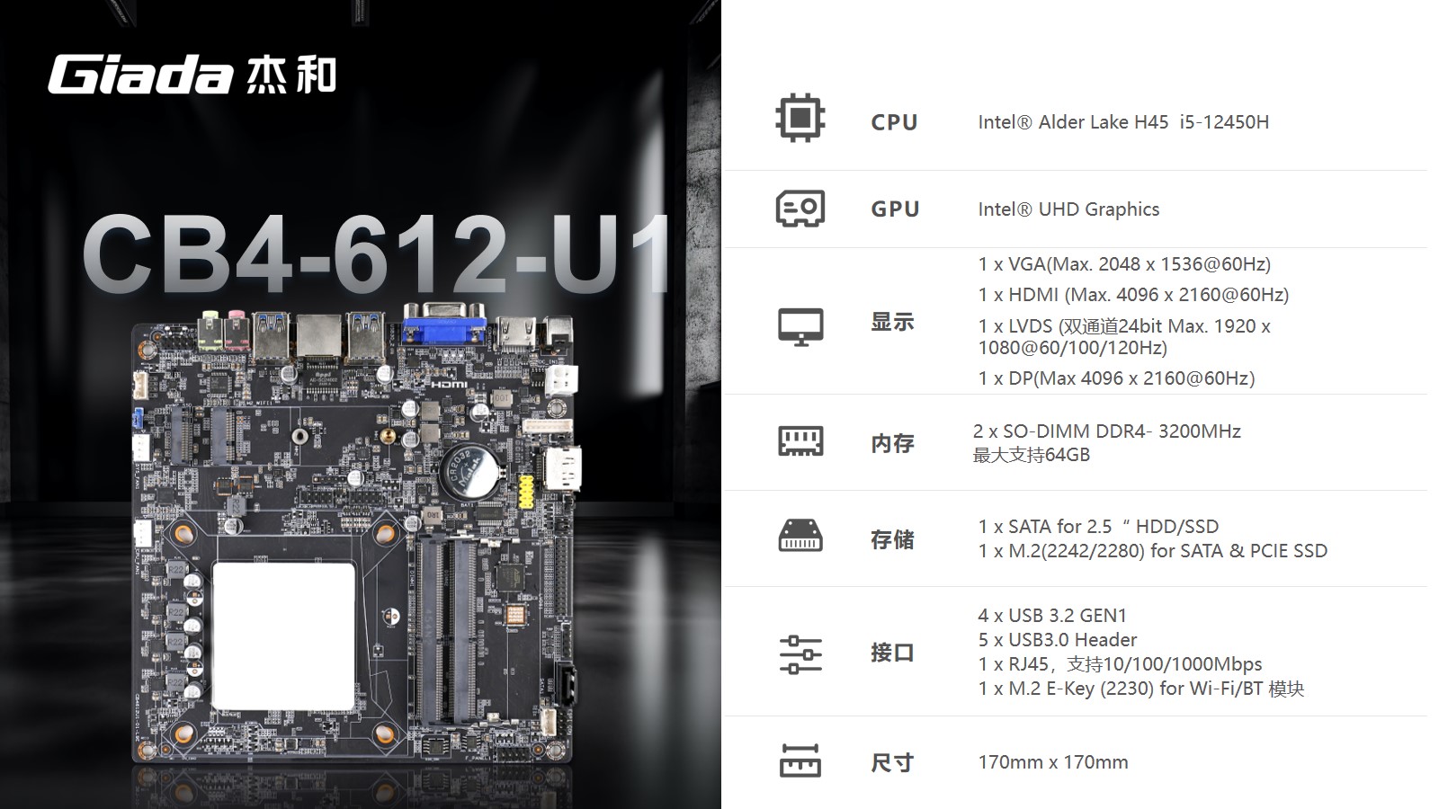 以最新的主板CB4-812-U1、CB4-612-U1为例,CB4-812-U1采用H610芯片组,支持Intel 酷睿12、13、14代处理器,CB4-612-U1则搭载Intel i5-12450H处理器,都支持高达120Hz的高刷新率