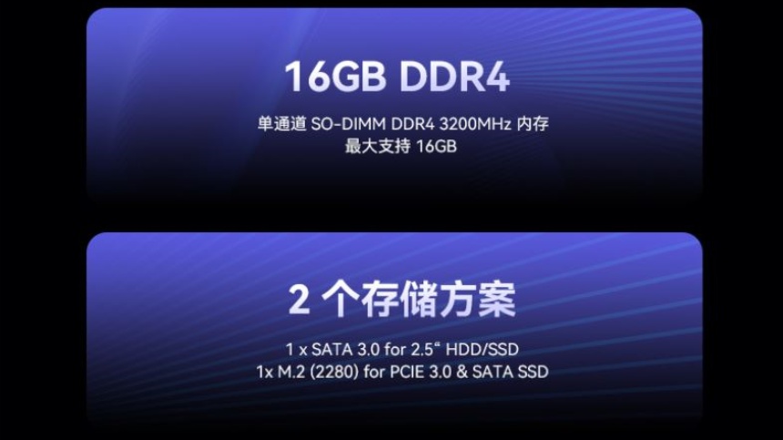 单通道DDR4 3200MHz内存,最大可扩展至16G,开机秒启,多任务切换行云流水,让用户告别卡顿等待,双硬盘位设计,支持SSD与HDD混合存储方案,兼顾了大容量存储需求与高速读写性能,无论是存储海量办公资料,还是快速读取教学课件,都能应对自如。