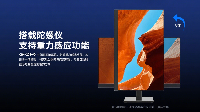 CB4-209-V0内置陀螺仪芯片、显著优化一体机的交互体验,当屏幕旋转为竖屏状态时,系统能够自动识别并调整内容显示方向,无需手动设置。