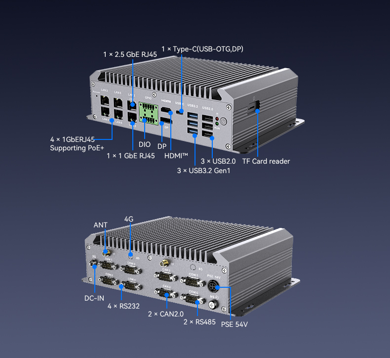 工业计算机AR707搭载了英特尔高性能网卡,可实时上传加工数据和设备状态,保障生产精度并提供4路PoE千兆接口,可同时连接多路高清摄像头和传感器,实现供电与数据采集一体化,让生产线更高效、更可靠。