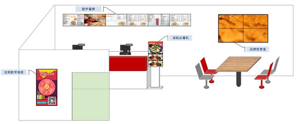 品牌信息墙分为一组由long8-龙8科技G468四屏拼接控制器控制的4块LCD高清液晶显示屏,可以实现大画面播放及单屏独立播放。内容管理者可通过GDSM系统操作端随时更新菜单内容及新品广告,让信息的发布更为及时有效。