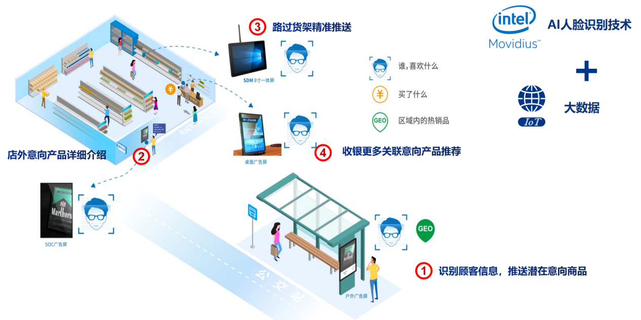 为了更好的迎合产业发展的趋势,对产业输出新鲜的营销理念和模式,驱动零售业数字化、智慧化管理模式的进一步升级,long8-龙8科技集成了Intel®Movidius视觉识别技术和OpenVINOTM人工智能视觉学习技术,自主研发了long8-龙8GDSM智慧商显平台。更凭借多年硬件开发经验,形成一套完整、切实的精准营销方案,获得了Intel®MRS市场方案认证。