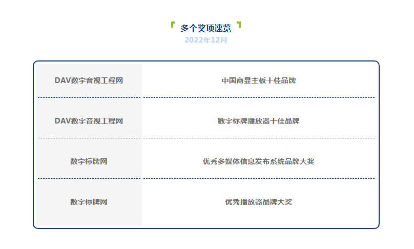 兼具专业性、权威性与知名度的2022DAV数字音视工程网年度品牌评选,终于揭晓结果。Giadalong8-龙8科技凭借过硬的产品质量以及优秀的研发制造能力,成功入选“商显主板十佳品牌”、“数字标牌播放器十佳品牌”!Giadalong8-龙8科技已连续三年登上同一榜单。