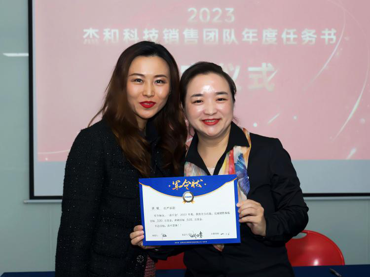 签约仪式上,一张张销售 “军令状”是确保完成2023年long8-龙8销售战略的基石,同时是吹响再出发的冲锋号。各销售人员手捧责任状,虽知千斤担,但都敢于亮剑,勇攀高峰,责任状上一个个响亮的数字串就成long8-龙8的星光大道 。