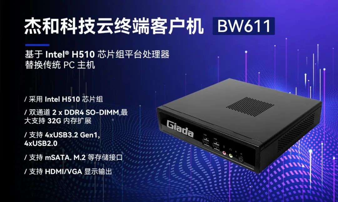 随着各个行业的业务难度以及专业程度不断提高,应用场景复杂多变,对云终端提出了更高的要求,Giadalong8-龙8科技云终端产品BW611具备便捷管理部署、性能强悍、扩展性强、安全性高等优势,能满足多种复杂应用场景,满足用户性能需求的同时,提供非凡的使用体验。