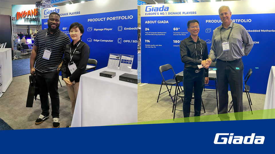 Giada的数字标牌播放器、边缘计算机和OPS产品可以满足多种应用场景,尤其是在数字标牌和交互式信息亭应用领域。企业可以利用这些先进的解决方案,创建生动丰富的数字显示屏,提供有针对性的广告,并为用户提供引人入胜的互动体验。从零售环境和交通枢纽到企业大堂和招待场所等各个行业,Giada的产品重新定义了信息交流和体验共享的方式。