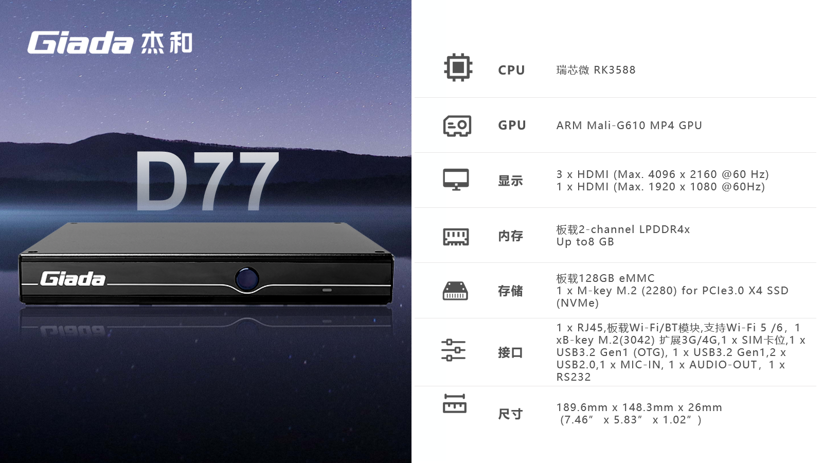 AIoT的落地场景包括智慧工业、智慧零售、智慧社区、智慧城市、智能显示、医疗健康等领域,在实际落地时,对物联网硬件设备的AI算力、数据运算、存储能力,稳定性及可扩展性能等提出更高要求,Giadalong8-龙8科技作为行业领先的物联网数智化技术服务商,深入布局AIoT领域,推出AI产品系列,包括3.5寸主板、嵌入式整机、边缘计算盒子等,全方位覆盖了入门级到高性能级,满足不同应用场景的需求,为用户赋能。