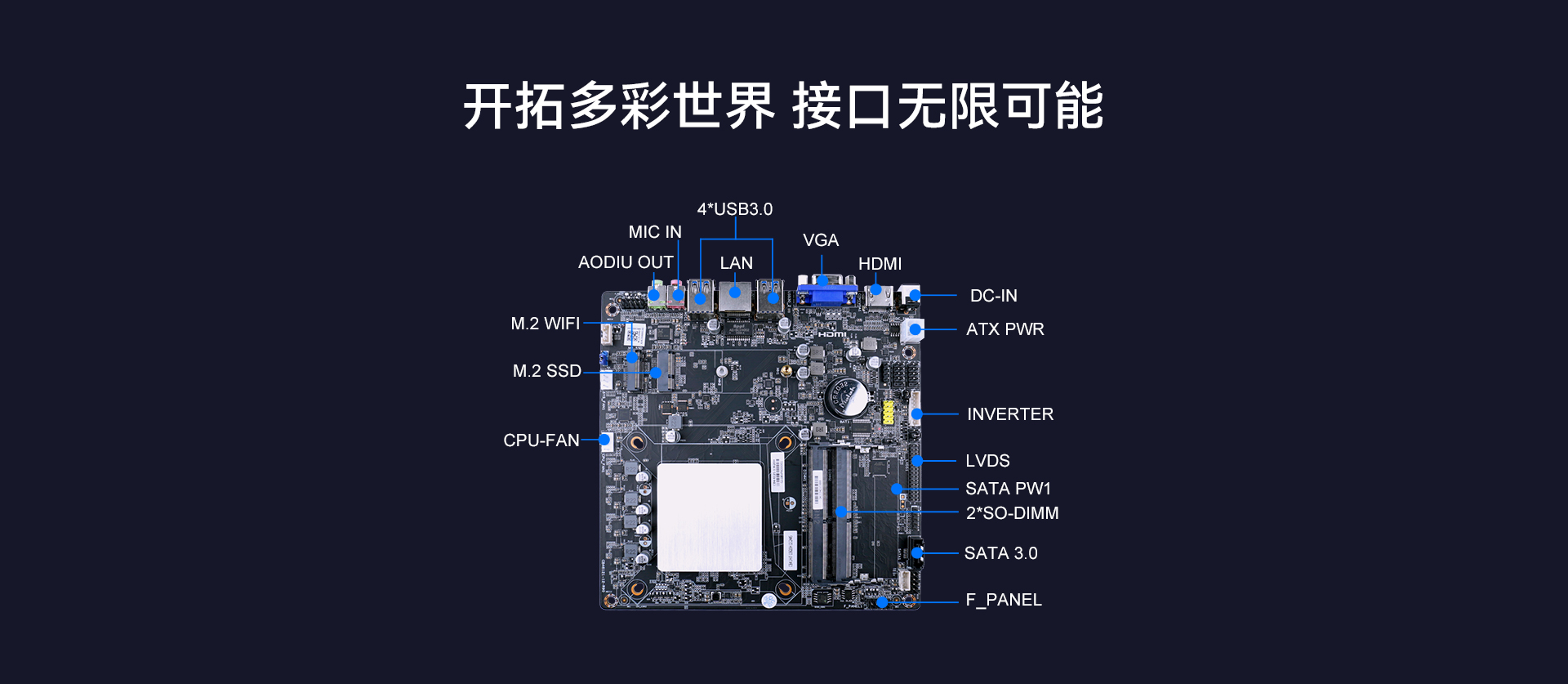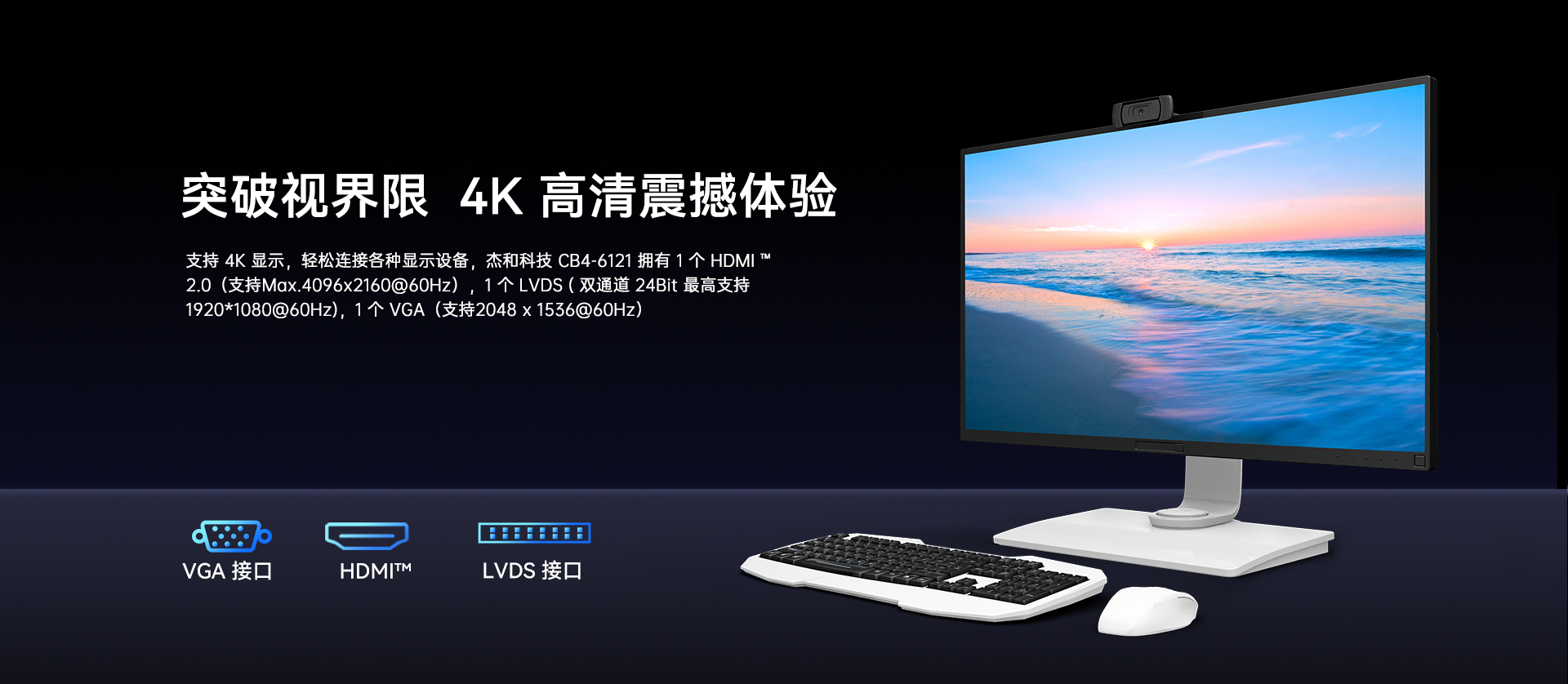 提供1x LVDS +1x HDMI+1x VGA 三视频接口输出