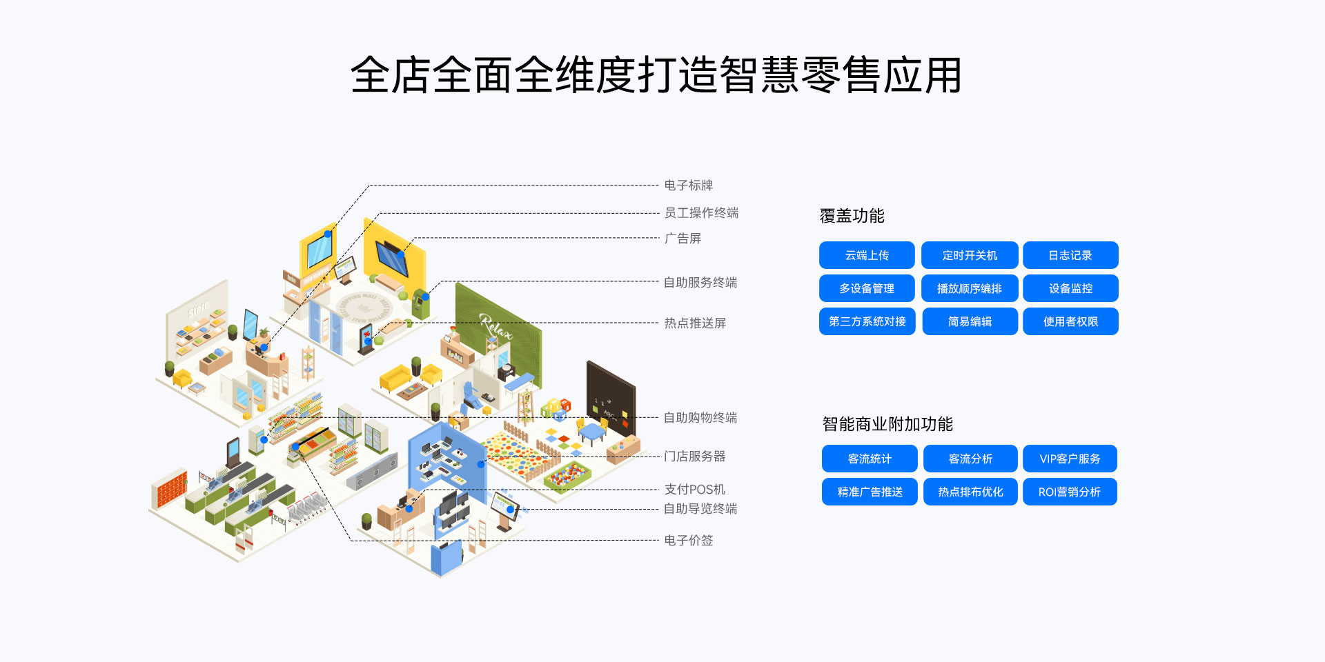 云、货、场、端一体化的全新模式。我们依托数字标牌、云终